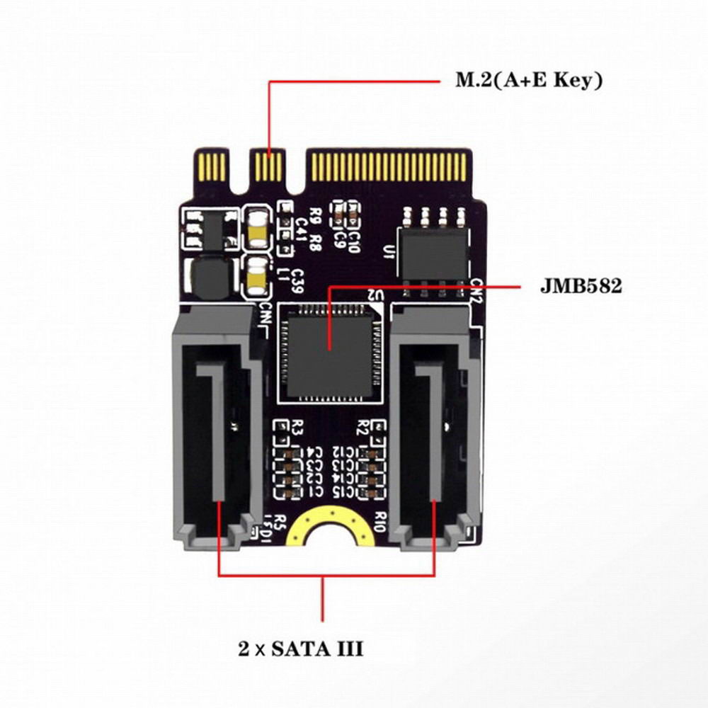 | Name:NGFF Key A+E PCI Express to SATA 3.0 6Gbps Dual Ports Adapter Converter Hard Drive Extension Card JMB582 2230 |  | | Model No: SA-034 | | UPC(EAN): SA-034 | | Price: Variable | | Manufacturer: Dongming | | Issue Date : 2021/12/22 23:03:15 | Buy From: | |  |  | | Dongming NGFF Key A+E PCI Express to SATA 3.0 6Gbps Dual Ports Adapter Converter Hard Drive Extension Card JMB582 2230